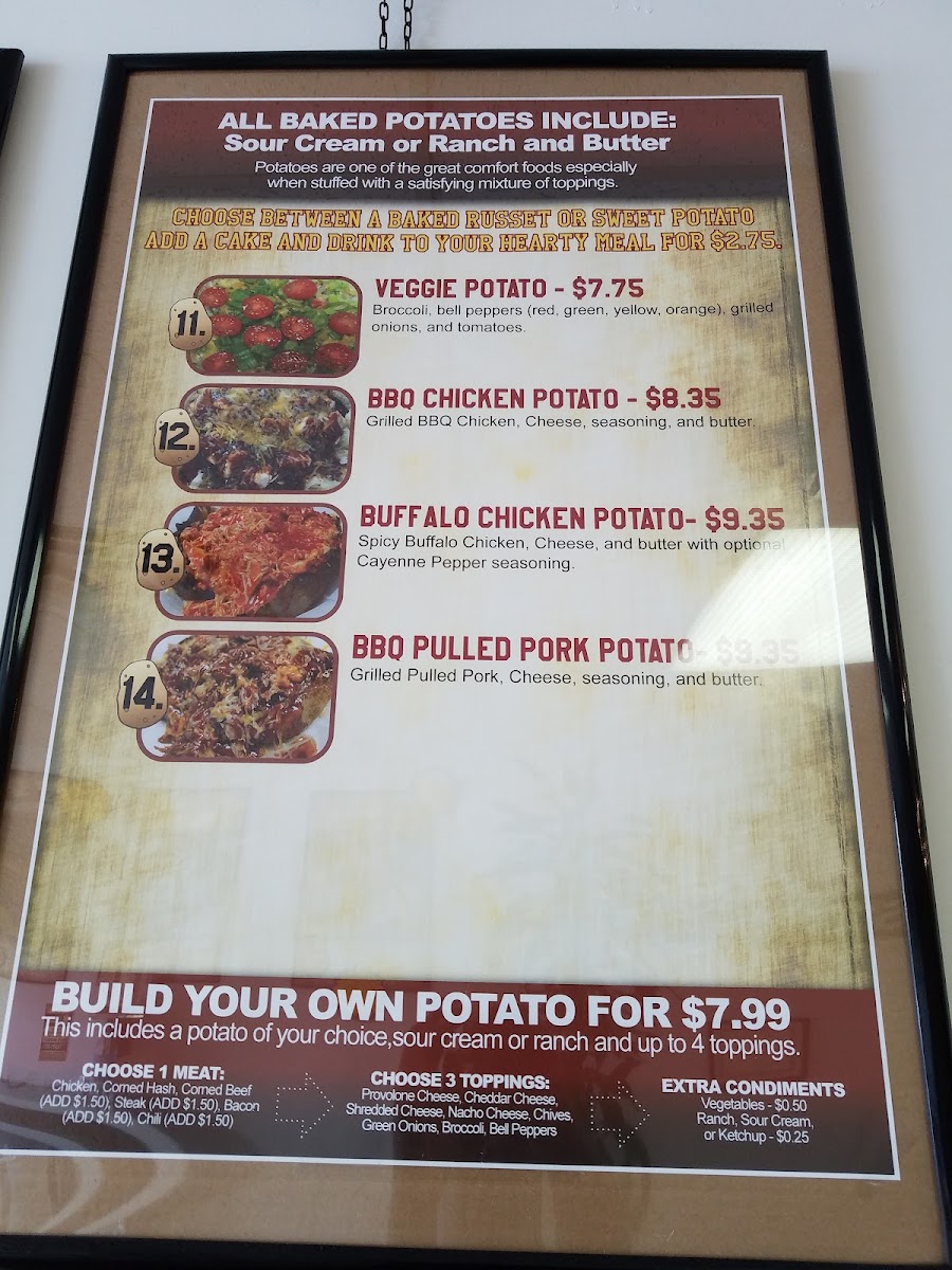 “ Oh my goodness! Was visiting from Phoenix and tried out this little gem. Can we get this in AZ please! I had the chicken broccoli and cheese potato and it was fantastic! My bf got the breakfast potato and didn’t think it could even be possible but it was even better than mine! So much flavor. Service was good, place was clean. I’ll seek this place out if I’m ever in Atlanta area again. ”